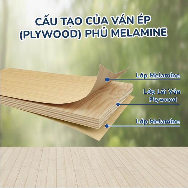 Plywood phủ Melamine là dòng gỗ công nghiệp cao cấp, có cốt gỗ gồm nhiều lớp gỗ tự nhiên lạng mỏng, ép chồng vuông góc theo kết cấu Plywood, kết hợp bề mặt phủ giấy trang trí nhúng keo Melamine.