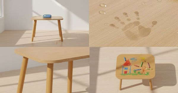 🧼 Trẻ em thường làm đổ sữa, nước hoặc vẽ bẩn lên bàn ghế. Lớp phủ gốc nước tạo màng bảo vệ bền bỉ, chống thấm tốt. Ba mẹ chỉ cần một chiếc khăn ẩm là có thể lau sạch mọi vết bẩn mà không làm ảnh hưởng đến màu sắc hay chất lượng gỗ.